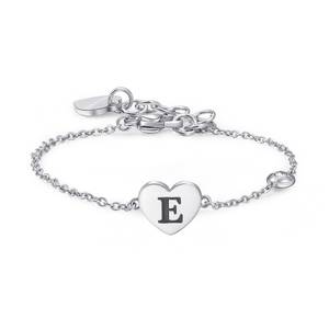 Bracciale in acciaio 316L con lettera E, smalto nero e cristallo.