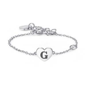 Bracciale in acciaio 316L con lettera G, smalto nero e cristallo.