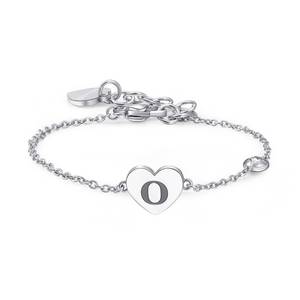 Bracciale in acciaio 316L con lettera O, smalto nero e cristallo.