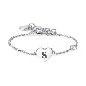 Bracciale in acciaio 316L con lettera S, smalto nero e cristallo.