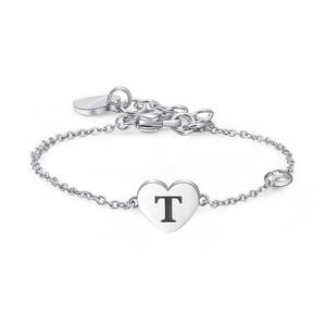 Bracciale in acciaio 316L con lettera T, smalto nero e cristallo.