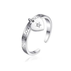 Anello in acciaio 316L con scritta, pendente a forma di cuore e cristallo.