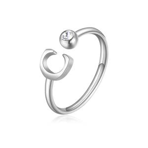Anello in acciaio 316L a forma di lettera C e cristallo.