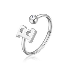 Anello in acciaio 316L a forma di lettera E e cristallo.