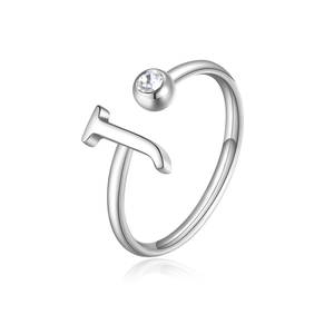 Anello in acciaio 316L a forma di lettera J e cristallo.