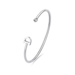 Bracciale rigido in acciaio 316L con cristallo e lettera D.