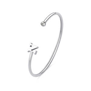 Bracciale rigido in acciaio 316L con cristallo e lettera N.