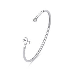 Bracciale rigido in acciaio 316L con cristallo e lettera P.
