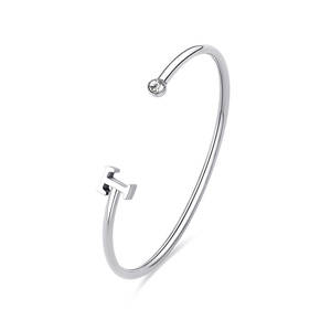 Bracciale rigido in acciaio 316L con cristallo e lettera T.