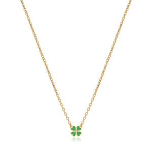 Collana girocollo in acciaio 316L e finitura pvd oro 14K con pendente a forma di quadrifoglio e smalto verde.