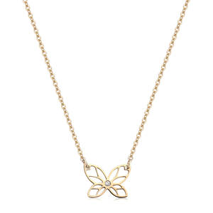 Collana gircollo in acciaio 316L e finitura pvd oro 14K con pendente a forma di farfalla e cristallo.