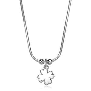 Collana girocollo in acciaio 316L con pendente a forma di quadrifoglio.