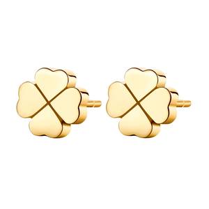 Orecchini a lobo in acciaio 316L a forma di quadrifoglio e finitura pvd oro 14K.