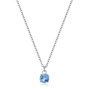 Collana girocollo in acciaio 316L e pendente centrale con cubic zirconia colore light sapphire.