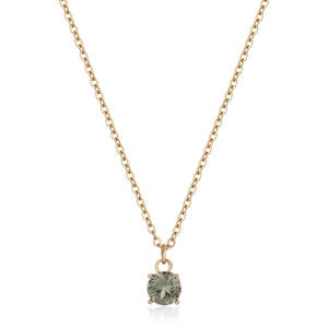 Collana girocollo in acciaio 316L, finitura pvd oro 14K e pendente centrale con cubic zirconia colore chrysolite.