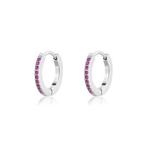 Orecchini a cerchietto in acciaio 316L con cristalli fucsia.