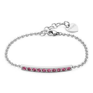 Bracciale con sfere in acciaio 316L e centrale con cristalli colore rose.