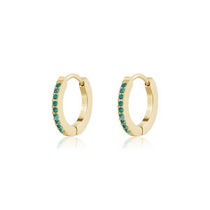 Orecchini a cerchietto in acciaio 316L e finitura pvd oro 14k con cristalli colore emerald.
