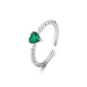 Anello regolabile in acciaio 316L con cubic zirconia colore emerald a forma di cuore.