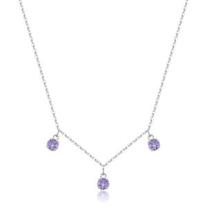 Collana girocollo in acciaio 316L con zirconi pendenti colore ametista.