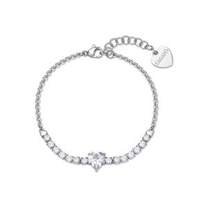 Bracciale in acciaio 316L con zirconi e zircone centrale a forma di cuore.