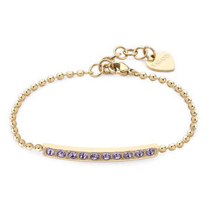 Bracciale con sfere in acciaio 316L, finitura pvd oro 14K e centrale con cristalli colore violet.