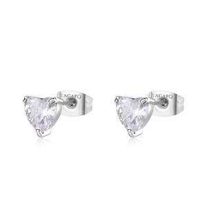 Orecchini a lobo in acciaio 316L con cubic zirconia a forma di cuore.