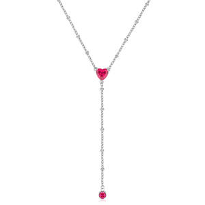 Collana cravattino in acciaio 316L con cubic zirconia colore ruby centrale a forma di cuore.