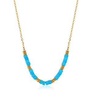 Collana girocollo in acciaio 316L e finitura pvd oro 14K e turchese ricostruito.