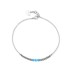 Cavigliera in acciaio 316L con sfere in acciaio e sfere centrali in turchese ricostruito.