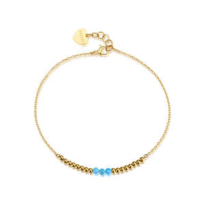 Cavigliera in acciaio 316L e finitura pvd oro 14K con sfere in acciaio e sfere centrali in turchese ricostruito.