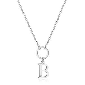 Collana girocollo in acciaio 316L con pendente a forma di lettera B e cristallo.