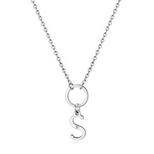 Collana girocollo in acciaio 316L con pendente a forma di lettera S e cristallo.