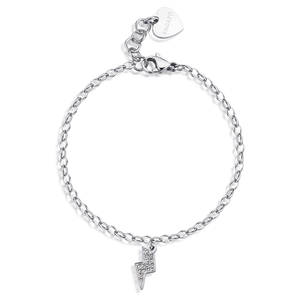 Bracciale componibile in acciaio 316L con pendente a forma di fulmine e cristalli.