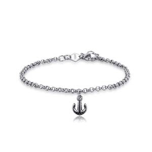 Bracciale in acciaio 316L con pendente a forma di ancora e smalto nero.