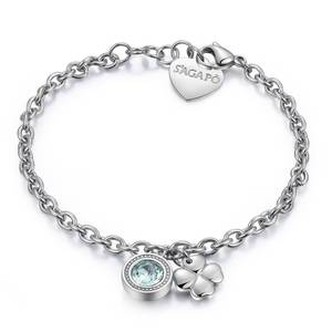 Bracciale in acciaio 316L con cristallo Swarovski© colore chrysolite e pendente a forma di quadrifoglio.