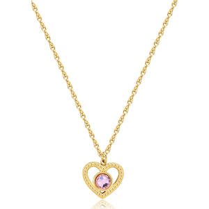 Collana girocollo in acciaio 316L e finitura pvd oro 14K con pendente a forma di cuore e cristallo colore light rose.