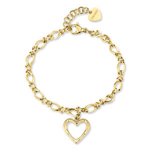 Bracciale catena in acciaio 316L e finitura pvd oro 14K con pendente a forma di cuore.