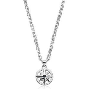 Collana in acciaio 316L con pendente rosa dei venti e zircone blu.