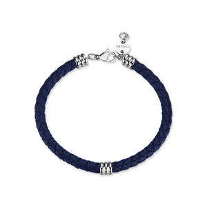 Bracciale in pelle blu intrecciata con elementi in acciaio 316L.