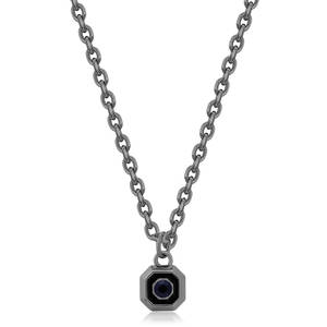 Collana in acciaio 316L e finitura pvd colore rutenio con pendente ottagonale e cristallo colore jet.