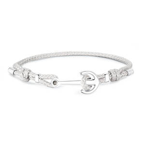 Bracciale in cordoncino nylon bianco con chiusura a forma di ancora in acciaio 316L.