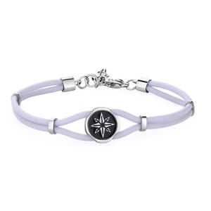 Bracciale in gomma grigia e centrale in acciaio 316L con rosa dei venti e smalto nero.
