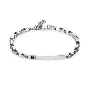 Bracciale in acciaio 316L con catena veneziana quadrata e centrale con incisione e smalto nero.