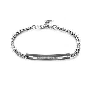 Bracciale in acciaio 316L con catena rolò quadrata e centrale con finitura pvd colore rutenio e cristalli.