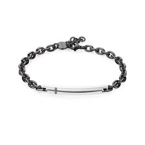 Bracciale in acciaio 316L con catena in finitura pvd colore rutenio e centrale in acciaio con incisione.