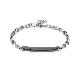 Bracciale in acciaio 316L con catena e centrale con finitura pvd colore rutenio e incisione.