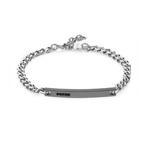 Bracciale in acciaio 316L con catena e centrale in finitura pvd colore rutenio e cristalli neri.