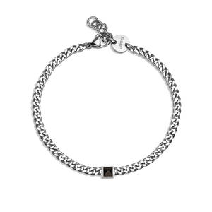 Bracciale catena in acciaio 316L con centrale borchia in finitura pvd colore rutenio.
