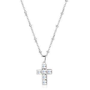 Collana girocollo in acciaio 316L con pendente a forma di croce e cristalli.